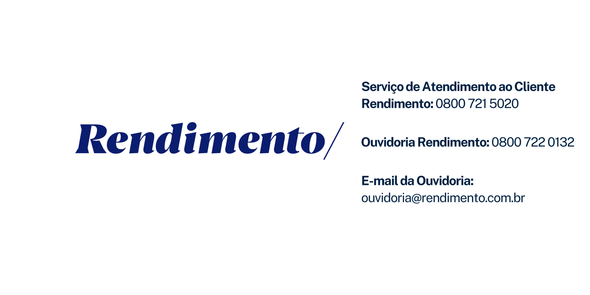 E-mail da Ouvidoria: ouvidoria@rendimento.com.br